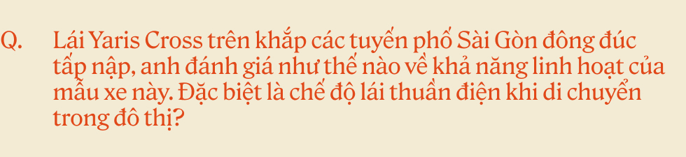 Với mình Yaris Cross là một chiếc xe đa-zi-năng dù là di chuyển trong thành phố đông đúc hay chạy đường xa đều phù hợp. Mang thiết kế thành thị, trẻ trung, điểm khiến Cơ thích nhất khi di chuyển với tốc độ không quá cao trong thành phố xe sẽ chuyển hoàn toàn sang chế độ chạy bằng điện giúp tiết kiệm nhiên liệu và không gây tiếng ồn. Còn khi ra khỏi thành phố, đẩy lên tốc độ 30 - 40 km/h, năng lượng sẽ được lấy thêm từ khối động cơ xăng để tiết kiệm pin và tăng thêm sức mạnh khi tăng tốc. Là một chiếc SUV với thiết kế rộng rãi, đặc biệt là phần cốp xe lớn đủ để chứa hành lý cho cả gia đình về quê hay các vật dụng cần thiết cho một chuyến camping dài ngày.