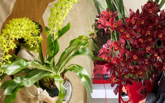 Địa lan là một trong những loài lan được chuộng nhất mỗi dịp Tết Nguyên đán. Những chùm nụ cong cong như dây pháo, khi nở bung thì thành cả thác hoa, mỗi bông đều đầy đặn, sắc nét, đứng xa cũng thấy khí chất “nhà có điều kiện”.