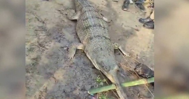Ngay khi nhìn thấy con cá sấu dài khoảng 2,5 mét đang nằm gần bờ, những người dân ra sông tắm vào sáng sớm đã la hét trong sợ hãi. Sự náo động đã thu hút dân làng đến hiện trường.