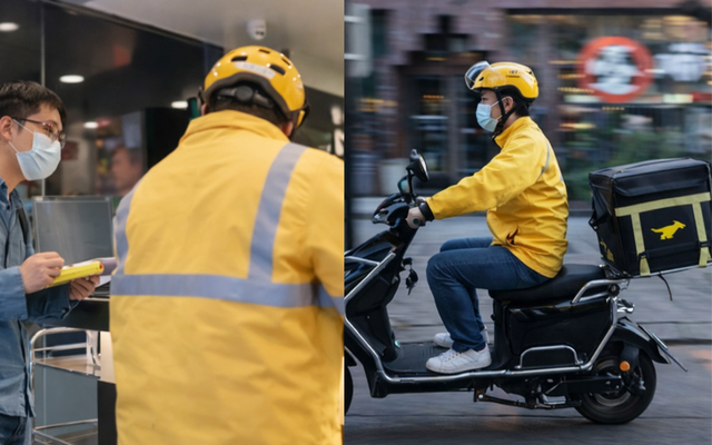 Hình ảnh “thiếu niên Bắc Đẩu” trong lúc giao đồ ăn. (Ảnh: China Youth Online)