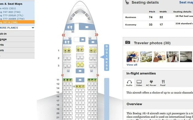 Ghế 11A trên máy bay Boeing 787-8 Dreamliner ở đâu?