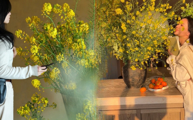 Mùa xuân không chỉ là sự thay đổi của đất trời, mà còn là khoảnh khắc ta muốn F5 lại chính ngôi nhà và tâm hồn mình. Có một câu nói đùa rất dễ thương dạo gần đây trên mạng xã hội thế này: "Trồng hoa cải, gặt tài hoa". Trong tiếng Trung, hoa cải dầu phát âm gần giống với từ "hữu tài hoa" (nghĩa là người có tài năng, khí chất). Vậy nên, kế hoạch đầu năm của rất nhiều chị em là tự thưởng cho mình một bình hoa cải vàng rực rỡ, vừa để thắp sáng góc phòng, vừa như một lời "xin vía" phong thủy nho nhỏ, mong một năm mới bản thân sẽ trau dồi thêm nhiều kỹ năng, công việc hanh thông và tài năng luôn tỏa sáng.