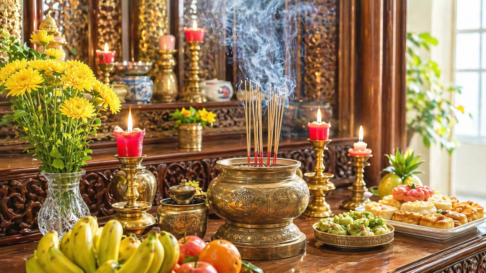 2. Không nên vội vàng quét dọn khu vực bàn thờ