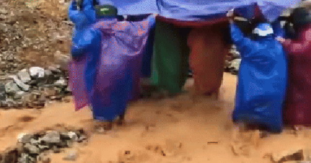 Để bệnh nhân không bị ướt, cơ quan chức năng phải dùng một tấm bạt lớn, bố trí 4-5 người di chuyển cùng những người khiêng võng, vừa đi vừa che. Trong khi đó, một người phải đi sát bên để khiêng bình ô xy cho bệnh nhân thở.