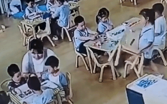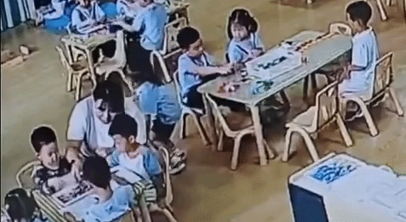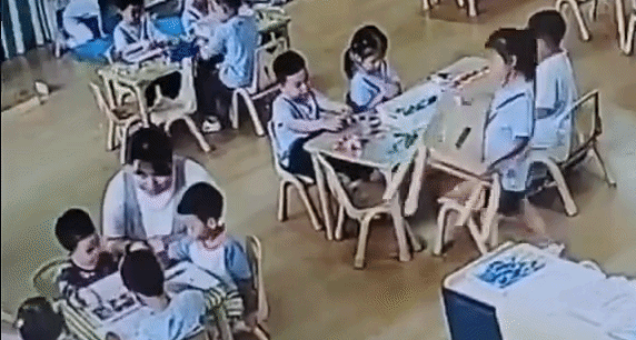 Đoạn video đang được chia sẻ trên mạng những ngày gần đây chính là một khoảnh khắc như vậy. Clip ghi lại cảnh cô giáo đang đi từng bàn để hướng dẫn các bé. Vì phải cúi xuống nói chuyện với một nhóm học sinh, cô phải khuỵu gối xuống khá thấp, tư thế này vốn đã mỏi, lại càng khó khăn hơn khi cô đang mang thai. Mọi thứ vốn dĩ sẽ vẫn như vậy, cho đến khi một bé gái ngồi gần đó để ý thấy điều này.