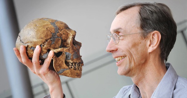 Một hộp sọ Neanderthal trên tay giáo sư Svante Paabo, người đoạt giải Nobel Y sinh 2022 vì những nghiên cứu mang tính nền tảng về loài người cổ này - Ảnh: PHYS