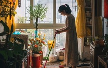 Nguyên tắc đúng là dọn từ trần nhà xuống sàn, từ phòng trong ra cửa chính. Việc này không chỉ giúp loại bỏ bụi bẩn triệt để, mà còn tượng trưng cho việc đuổi năng lượng xấu ra khỏi nhà, mở đường cho vận may và sinh khí mới tràn vào. Đặc biệt, khi dọn tới cửa chính, nơi được coi là miệng nhà, bạn nên lau kỹ khung cửa và tay nắm. Đây là khu vực thu hút tài khí đầu tiên, nếu để bụi bẩn bám lâu ngày sẽ khiến vận may bị chặn lại ngay từ ngưỡng cửa.