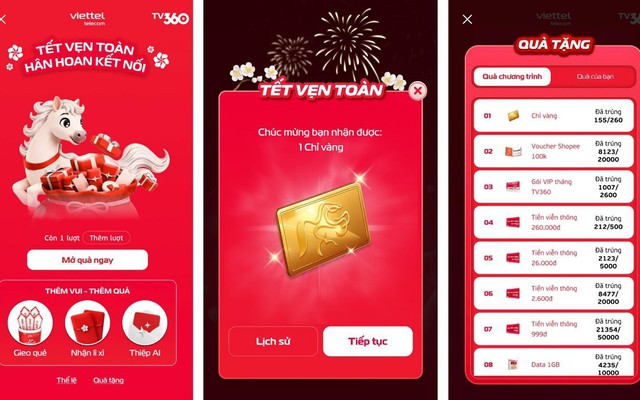 Cách tham gia: Chỉ cần là khách hàng Viettel, truy cập ứng dụng TV360 và tham gia quay số để nhận thưởng. Kết quả hiển thị ngay sau mỗi lượt quay.