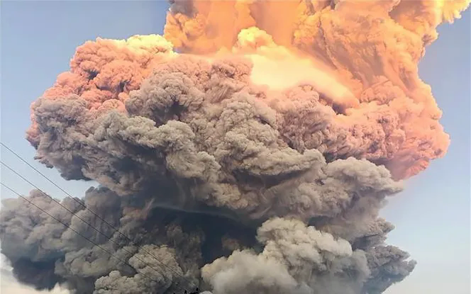 Núi lửa Lewotobi Laki-Laki trên đảo Flores, Indonesia phun trào, ngày 17/6/2025 (Ảnh: THX/TTXVN)