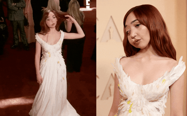 Nikki Lilly xuất hiện tại Oscar với thiết kế tinh khôi mô phỏng một bộ cánh lông vũ. (Nguồn: Instagram)