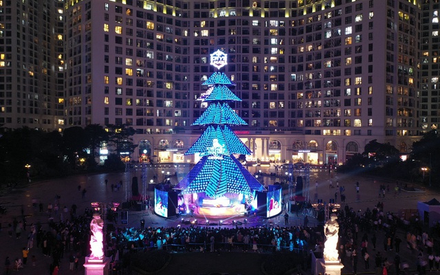 Cây thông pha lê khổng lồ cao tới 25m của Tiger Crysmas tỏa sáng rực rỡ giữa trời đông Hà Nội.