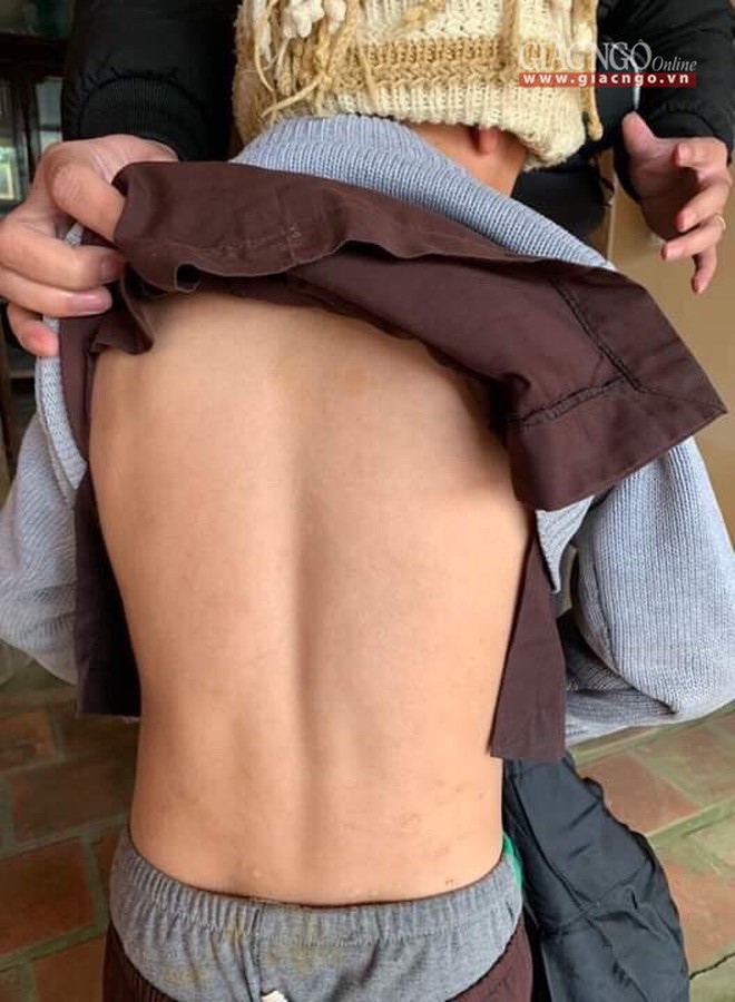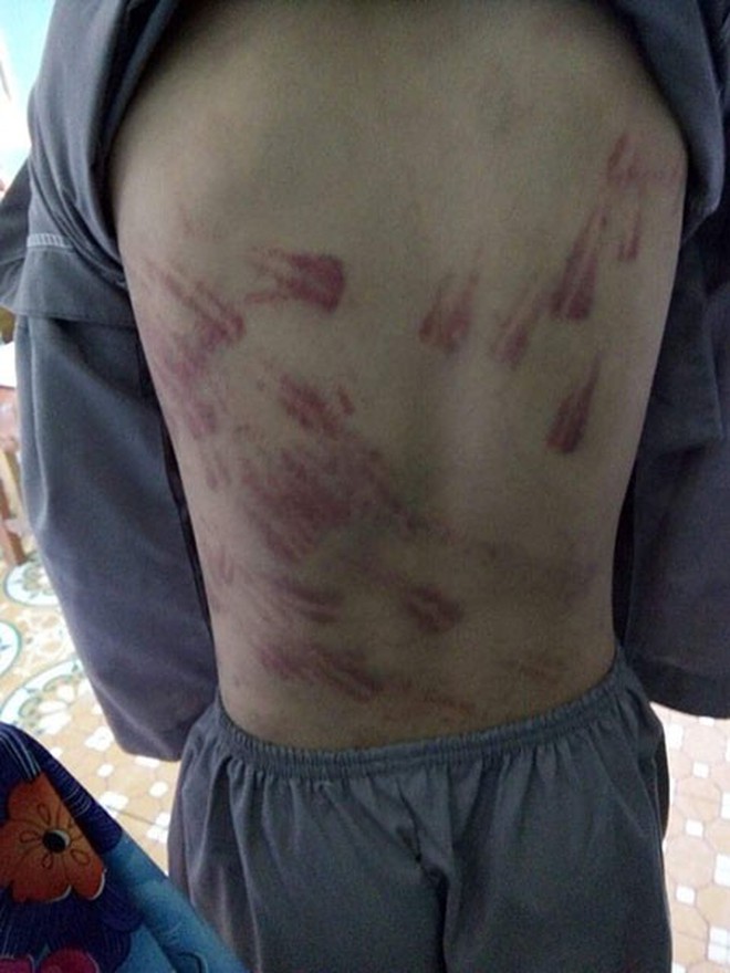 Theo hình ảnh được cô giáo Nhuần cung cấp cho thấy, bé D. bị hàng chục vết thâm tím hằn đầy lưng, bắp tay và ngực cũng bị chi chít các vết bầm tím. Ngoài ra, trên đầu cháu bé có rất nhiều các vết sẹo đã lành và 1 vết thương lớn giữa đầu.