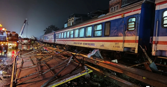Khi đến Km15+700 thì tàu xảy ra va chạm với xe ô tô tải biển kiểm soát 29H-792.XX do anh N.V.T (SN 1974, trú tại xã Mê Linh, Hà Nội) điều khiển.
