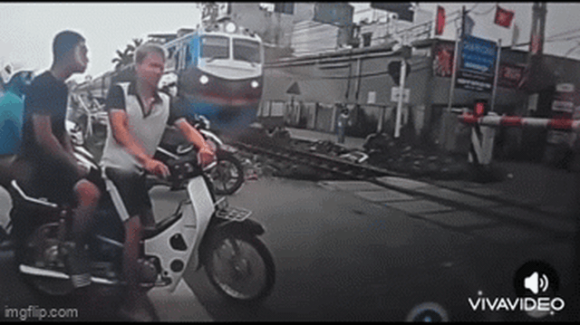 Phát hiện xe máy băng qua đường sắt, lái tàu đã phanh hãm để tránh xảy ra tai nạn. Tài xế xe máy bị ngã ra đường, sau đó điều khiển xe rời khỏi hiện trường.
