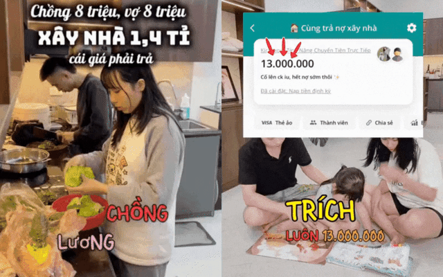 Mỗi tháng, 13 triệu đồng được để riêng ra để trả gốc và lãi ngân hàng. Số tiền còn lại được chia nhỏ thành từng khoản cố định, cho vào các "hũ chi tiêu" riêng biệt để tránh tâm lý "thấy còn nhiều tiền thì tiêu thoải mái".