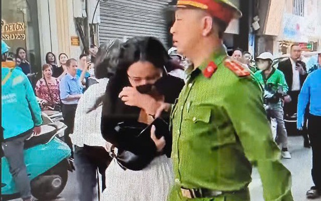 Người phụ nữ được cảnh sát bảo vệ (ảnh do người dân chia sẻ)