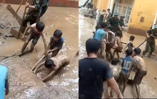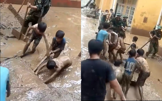 Một đoạn clip lan truyền trên mạng xã hội ghi lại cảnh các em cố gắng cùng nhau đẩy đi lớp bùn dày bám đặc sệt trên sân trường. Cả thân hình nhỏ bé không đâu không dính bùn đất nhưng các em vẫn luôn vui vẻ chẳng một lời kêu than. Hình ảnh ấy khiến nhiều người không khỏi rưng rưng. Cư dân mạng đã để lại nhiều bình luận vừa bày tỏ sự xót xa vừa ngợi khen: