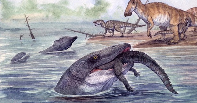 Thủy quái thương long săn cá sấu cổ đại - Ảnh đồ họa: Christopher DiPiazza