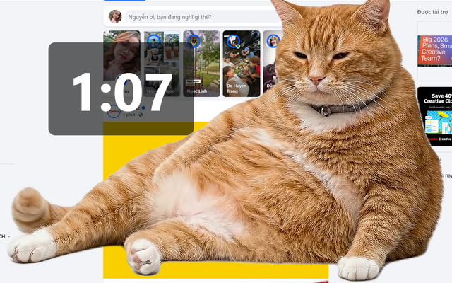 Chú mèo dễ thương xuất hiện đúng lúc, khiến người dùng buộc phải tạm dừng và thoát khỏi vòng lặp lướt mạng xã hội