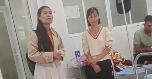 Bà Đỗ Thị Hồng Huế (bên phải) đến thăm các học sinh khi đang điều trị tại bệnh viện.