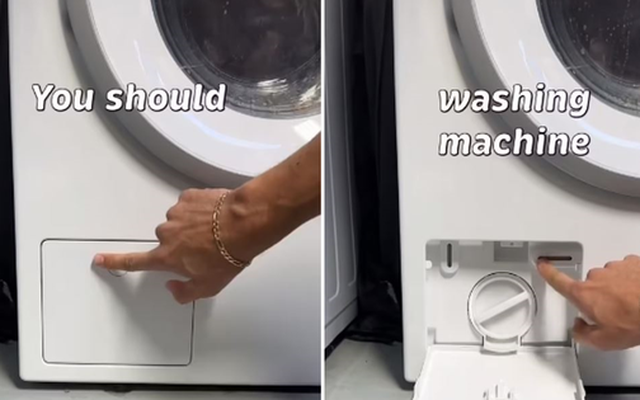 Chuyên gia vệ sinh hướng dẫn cách tìm nút bí mật giúp mở cửa máy giặt trong trường hợp khẩn cấp. (Ảnh: chụp màn hình từ tài khoản @jeeves_ny)