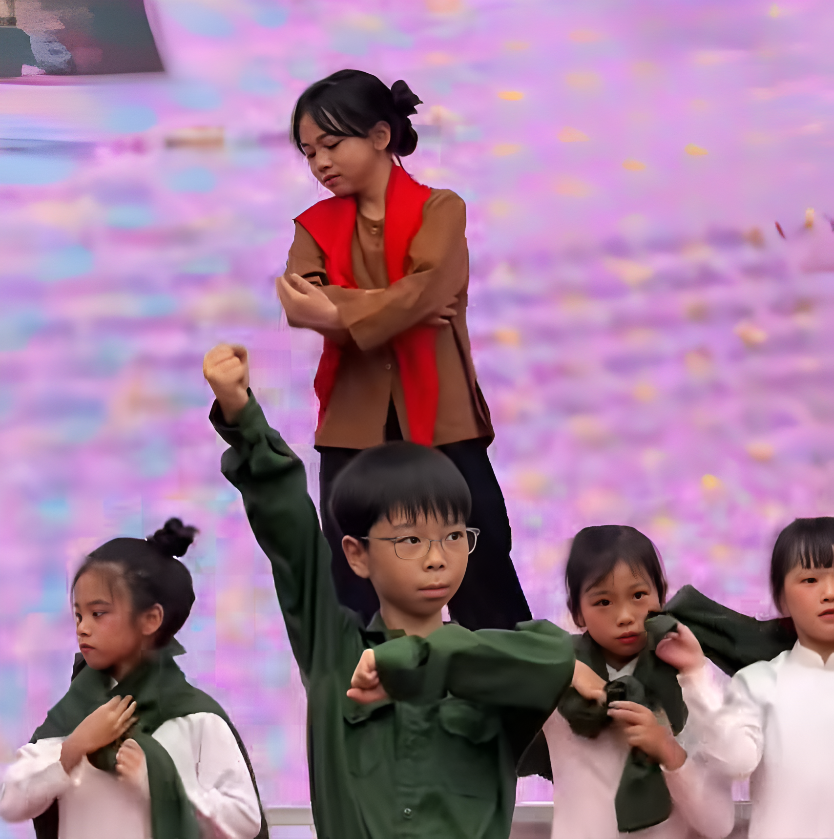 Ở trung tâm tiết mục là cô giáo trong tà áo dài hồng, thể hiện ca khúc với giọng hát đầy nội lực. Không chỉ là hát, từng ánh mắt, từng câu chữ đều mang theo cảm xúc, khiến người xem dễ dàng cảm nhận được câu chuyện phía sau bài hát.