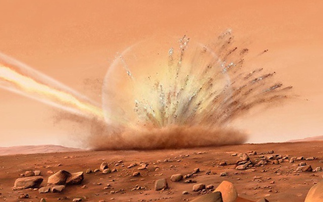 Một vụ va chạm trên Sao Hỏa cũng không đủ để giết chết sinh vật bé nhỏ mang tên D. radiodurans của Trái Đất - Ảnh đồ họa: IPGP -CNES - N. Starter