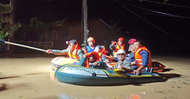 Mưa lớn trong ngày 27-10 khiến nhiều nơi ngập, lực lượng chức năng triển khai xuống cứu hộ đưa người dân đến nơi an toàn.