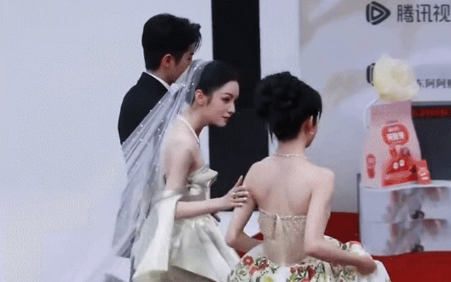 Trước tiên, đập vào mắt là khung cảnh sự kiện cực kỳ sơ sài, nhìn thôi đã thấy ngán ngẩm. Sốc nhất là phần thảm đỏ được chắp nối bằng các chất liệu khác nhau, có những phần mép bị vểnh lên bất thường, khiến các sao nữ khó khăn trong việc di chuyển. Đây cũng là lý do khăn voan của nữ diễn viên Châu Dã bị mắc lại khi đang sải bước cùng đoàn phim Cẩm Nguyệt Như Ca, khiến cô suýt thì "vồ ếch" đầy tẽn tò ngay trước mắt bao người.