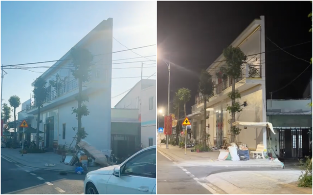 Quan sát kỹ hơn, có thể thấy căn nhà vẫn có ban công, lan can và khoảng không gian phía trước, cho thấy công trình không hề siêu mỏng như ấn tượng ban đầu. Thay vào đó, ngôi nhà được cho là xây dựng trên một lô đất vát góc ở ngã ba hoặc giao lộ nên được thiết kế theo dạng tam giác để tận dụng diện tích.