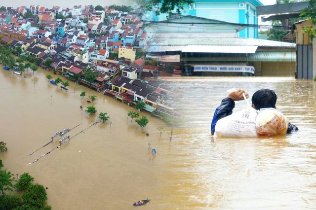 Phố cổ Hội An bị ngập sâu từ sáng ngày 27/10 đến nay vẫn chưa có dấu hiệu rút bớt.