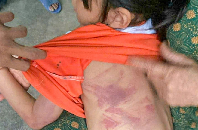 Hình ảnh bé gái bị đánh bầm tím lưng. Ảnh: VnExpress