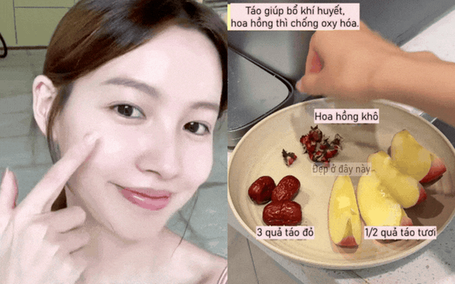 Loại thứ hai là các loại nước thảo mộc giúp thanh lọc cơ thể. Không cần cầu kỳ, chỉ cần kết hợp những nguyên liệu quen thuộc như táo đỏ, kỷ tử hoặc một lát gừng là đủ. Những ngày ăn uống nhiều dầu mỡ hoặc thiếu ngủ, tôi sẽ ưu tiên uống loại nước này. Sau vài ngày, cảm nhận rõ da “dễ thở” hơn, ít bị xỉn màu và cũng hạn chế nổi mụn.
