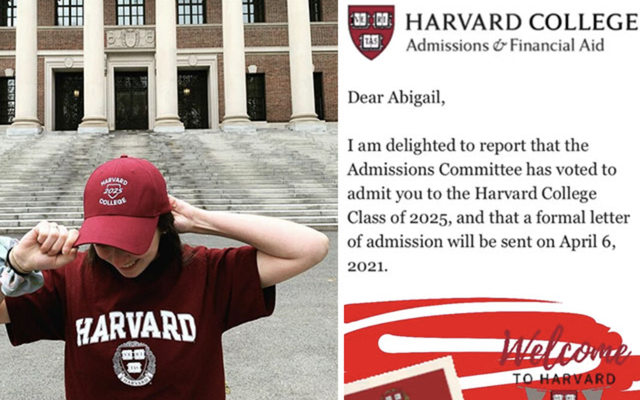 Câu chuyện chân thành ấy của Abigail không chỉ chạm đến trái tim cộng đồng mạng mà còn đưa Abigail thẳng vào Harvard. Được biết vào thời điểm đó, chỉ 1.968/57.435 thí sinh được chọn vào Harvard.