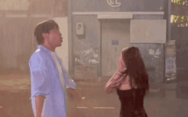Hình ảnh một cặp đôi sao Việt được bắt gặp tình tứ dưới mưa