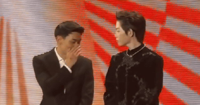 Đức Phúc và Đình Bắc trò chuyện rôm rả trên sân khấu WeChoice Awards 2025. Nguồn: @quynhhchii.dayneee