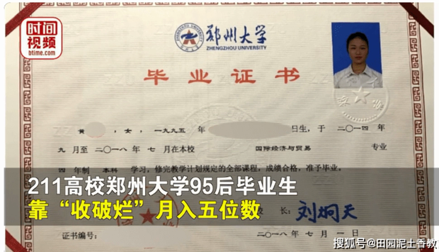 Theo thời báo Bắc Kinh đưa tin, gần đây, câu chuyện một cô gái tốt nghiệp ngành kinh tế và thương mại quốc tế tại Đại học Trịnh Châu (Trung Quốc) kiếm được hơn 10.000 nhân dân tệ/tháng (khoảng hơn 34 triệu VNĐ/tháng) chỉ dựa vào việc thu gom phế liệu đã thu hút sự quan tâm của dư luận.