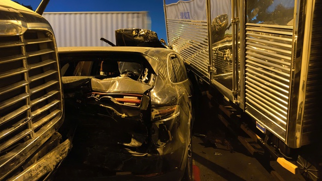 Theo ghi nhận tại hiện trường, các phương tiện hư hỏng phần đầu, phần đuôi, nhiều mảnh vỡ văng khắp mặt đường. Trong đó, ô tô Porsche bị hư hỏng nặng nhất, phần đầu xe biến dạng, nắp capo cong vênh mắc vào rơ-moóc xe đầu kéo phía trước; kính chắn gió và cửa kính bên hông đều bị vỡ.