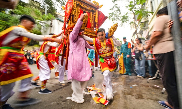 Trai tráng rước kiệu, xoay vòng, bứt tốc như lướt sóng ở lễ hội cổ Hà Nội