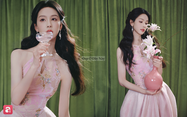 Với Trần Đô Linh, cô lựa chọn phiên bản tông hồng ngọt ngào - gam màu vốn gắn liền với hình ảnh dịu dàng, thanh thuần. Nữ diễn viên kết hợp cùng kiểu tóc buộc nửa, uốn xoăn nhẹ, tạo nên tổng thể mềm mại và nữ tính. Layout này giúp cô tôn lên đường nét gương mặt thanh tú, đồng thời giữ được vẻ trong trẻo đặc trưng. Có thể nói, Trần Đô Linh mang đến một hình ảnh như "nàng thơ", nhẹ nhàng nhưng vẫn đủ thu hút.