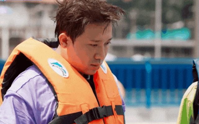 52Hz còn "ra lệnh" cho Trấn Thành dù té xuống nước vẫn sang (ảnh: Running Man Việt)
