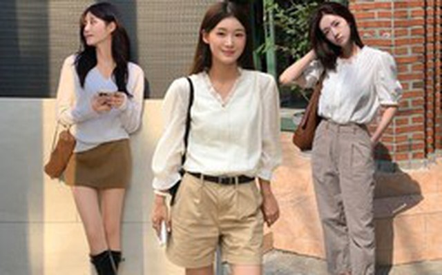 Thay vì giới hạn style với những mẫu quần dài, chị em nên làm mới phong cách thường xuyên với các thiết kế dáng ngắn, như quần short là một ví dụ. Công thức áo blouse trắng và quần short màu be không chỉ có sự trẻ trung mà còn toát lên nét nữ tính, yêu kiều.