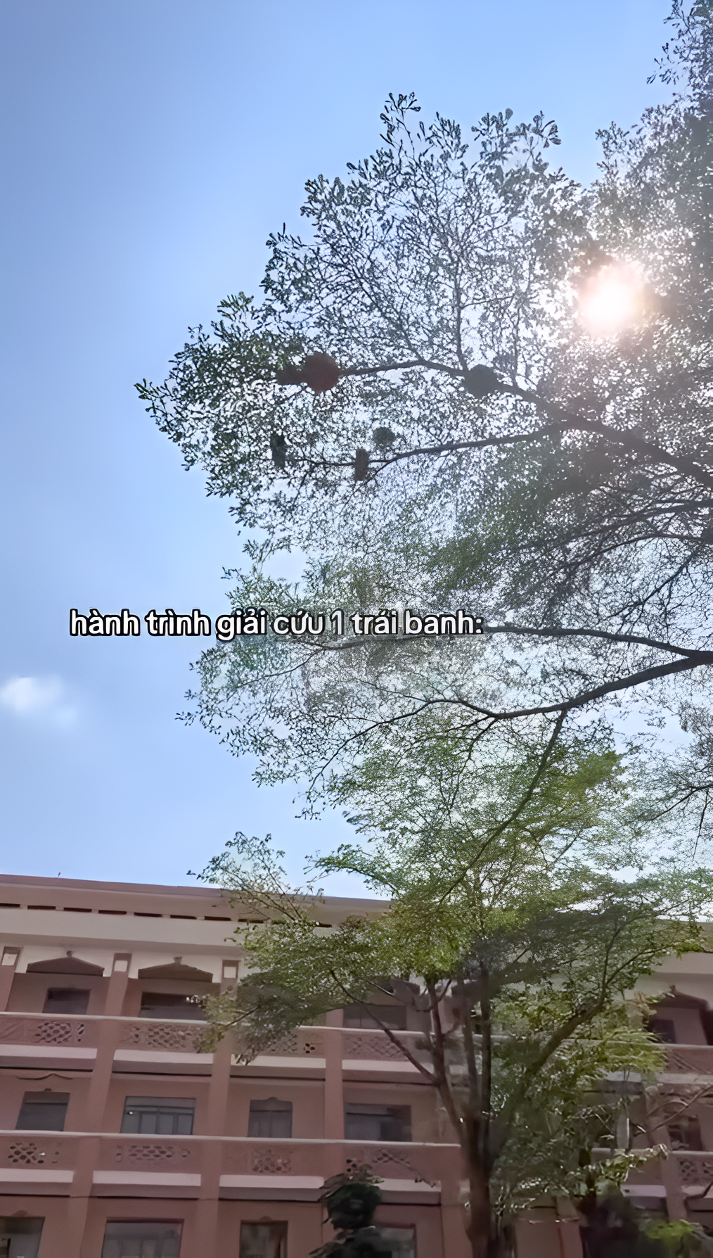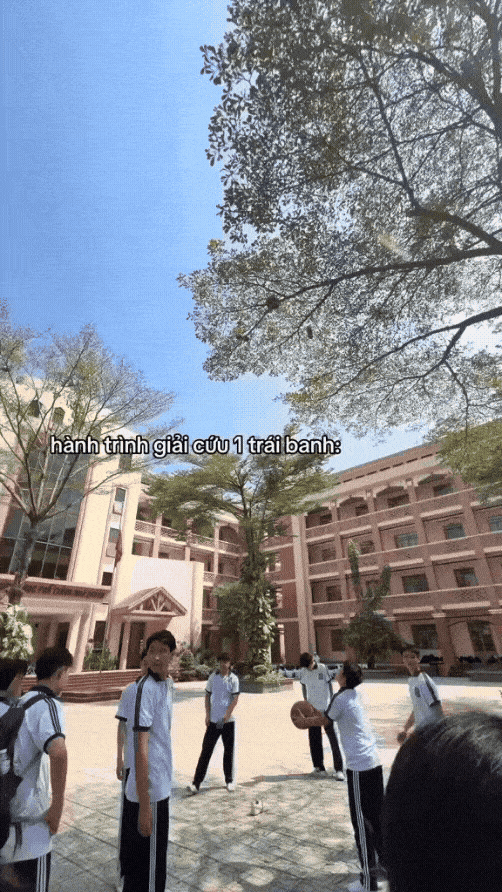 Cụ thể, video ghi lại cảnh một nhóm nam sinh khoảng 7–10 người của trường THPT Ngô Quyền, TP. HCM tụ tập dưới tán cây lớn, nơi một quả bóng màu cam không may mắc kẹt trên cành cao. Không ai đứng yên nhìn “tài sản chung” nằm đó, cả nhóm lập tức bắt đầu hành trình giải cứu.