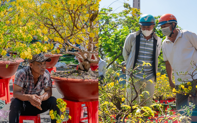 Nụ mai còn chúm chím trong nắng trưa, chờ một cái gật đầu trước khi được bưng lên xe.
