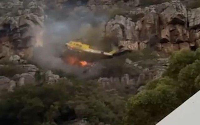 Trực thăng cứu hỏa va vào vách đá rồi lao thẳng xuống đám cháy lớn
