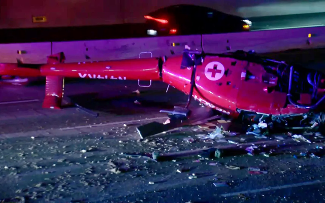 Một trong hai phụ nữ bị mắc kẹt bên dưới trực thăng. Người dân có mặt trên đường cao tốc hỗ trợ nhân viên cứu hỏa nâng một phần trực thăng ra khỏi đường để giải cứu nạn nhân và đưa cô lên xe cứu thương.