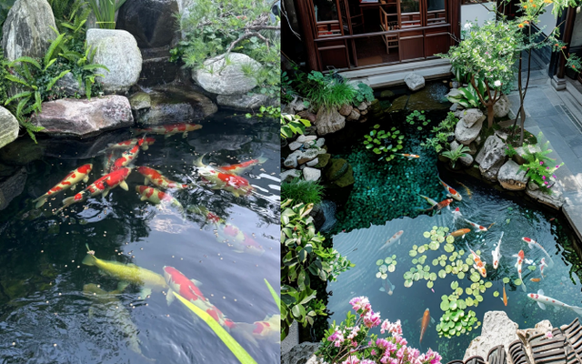 - Có cá bơi lội, nước được thay hoặc lưu thông nhẹ: Nước động ở mức vừa phải giúp ao không tù đọng, không sinh rêu bẩn.