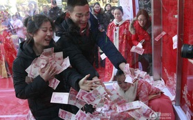 Chắc chắn bất kỳ du khách nào cũng muốn được tham gia vui chơi có thưởng "bắt tiền từ trên trời rơi xuống" và ôm được thật nhiều tiền về nhà giống như tại khu thắng cảnh ở thành phố Hàng Châu, Chiết Giang, Trung Quốc dưới đây.
