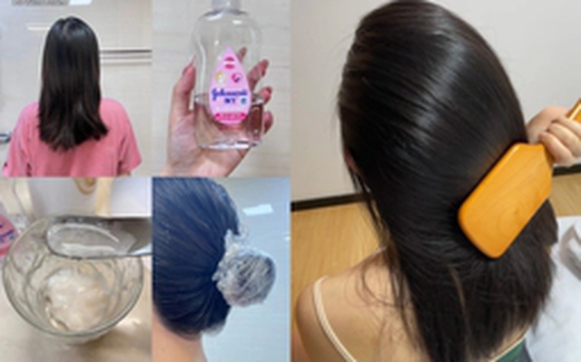 Chính vì thế, khi bắt đầu "hành trình làm đẹp tóc" lần này, tôi quyết định thử một cách đơn giản và chi phí thấp hơn: dùng dầu em bé để dưỡng tóc. Đây là phương pháp mà tôi đọc được trong một hội nhóm chia sẻ bí quyết chăm sóc tóc. Nghe thì có vẻ hơi kỳ lạ, nhưng càng tìm hiểu tôi càng thấy hợp lý.
