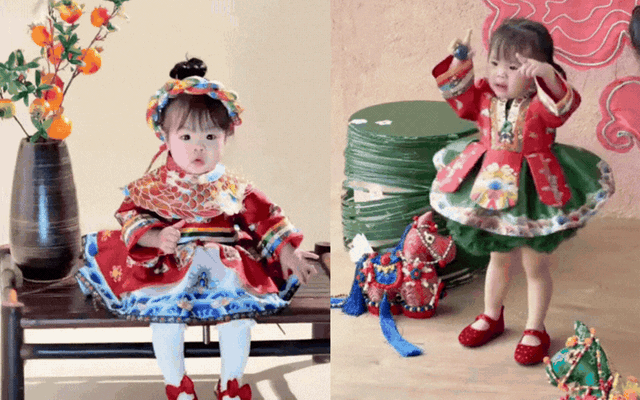 Không chỉ sở hữu bộ Y Long đình đám, Ting Ting còn được nhiều người nhận xét là một trong những em bé có "bộ sưu tập" váy BÉ CÚP BÔNG đồ sộ nhất trong hội hot kid. Mới đây, mẹ Bảo Ngọc từng khiến cộng đồng mạng trầm trồ khi khoe cùng lúc 4 thiết kế nổi bật gồm váy Y Long, váy Chu Loan, áo dài Đan Lĩnh và áo dài Phấn Lĩnh.